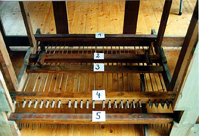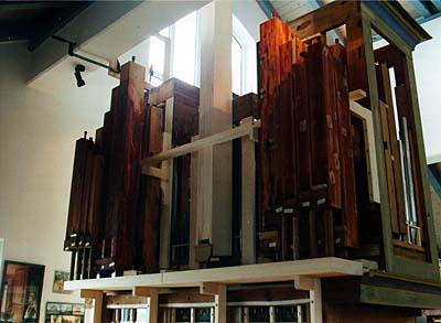 erbaut vorhandene Teile: - Gehäuse, - Manualwindlade - kurze Baßoktave C - f''', - Flöte 4', - teils Gemshornquinte 3' - Salicional 8', - Principal 4', - Superoktave 2' |